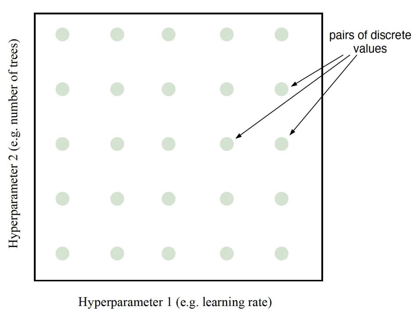 Simplest Hypterparameter Tuning technique, used with a few hyperparameters and short value ranges.