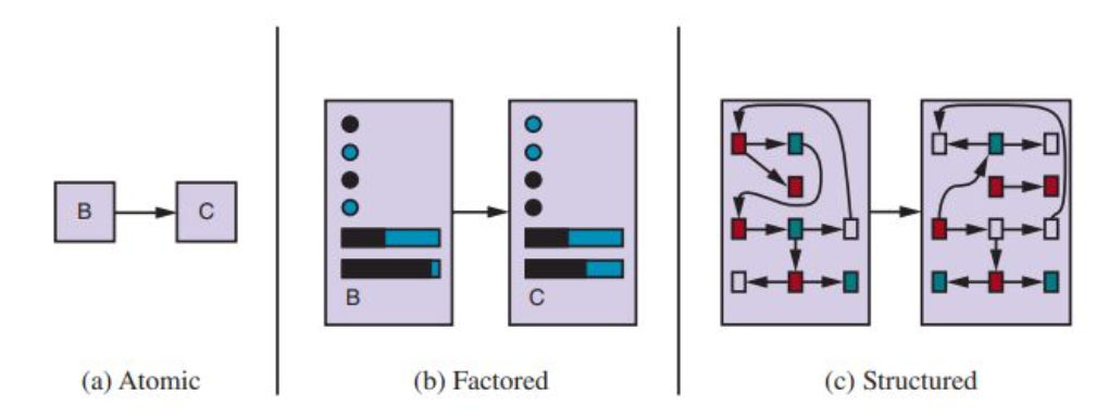 - Factored: each state as a set of variables or attributes, with values
