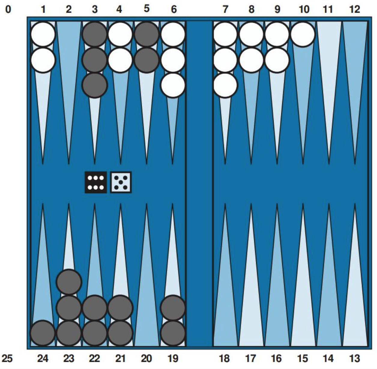 Stochastic games include a random element (e.g. dice). Backgammon is a classic example: