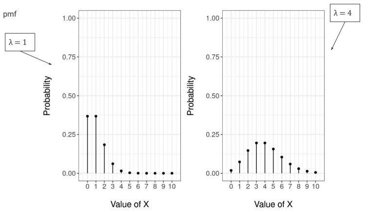 If these conditions are met, the discrete random variable X follows a Poisson distribution and will have the pmf: