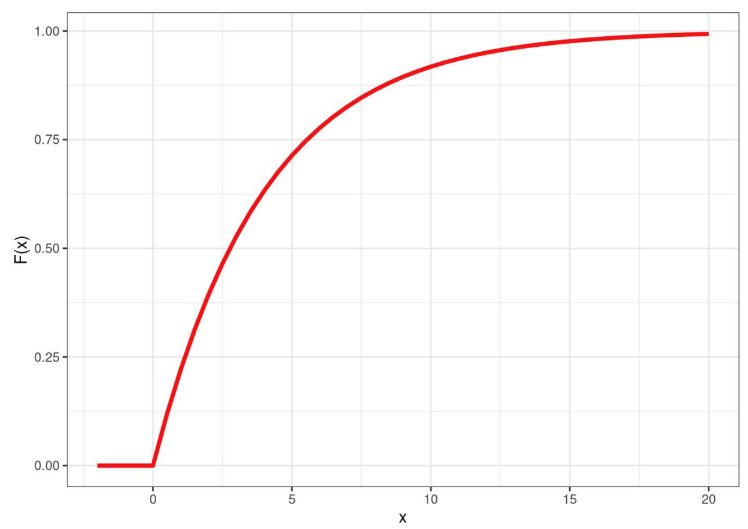 $$ f(x) = \begin{cases} \lambda e^{-\lambda x}, & x \geq 0 \\ 0, & \text{otherwise} \end{cases} $$- Where λ = 1/E(X)